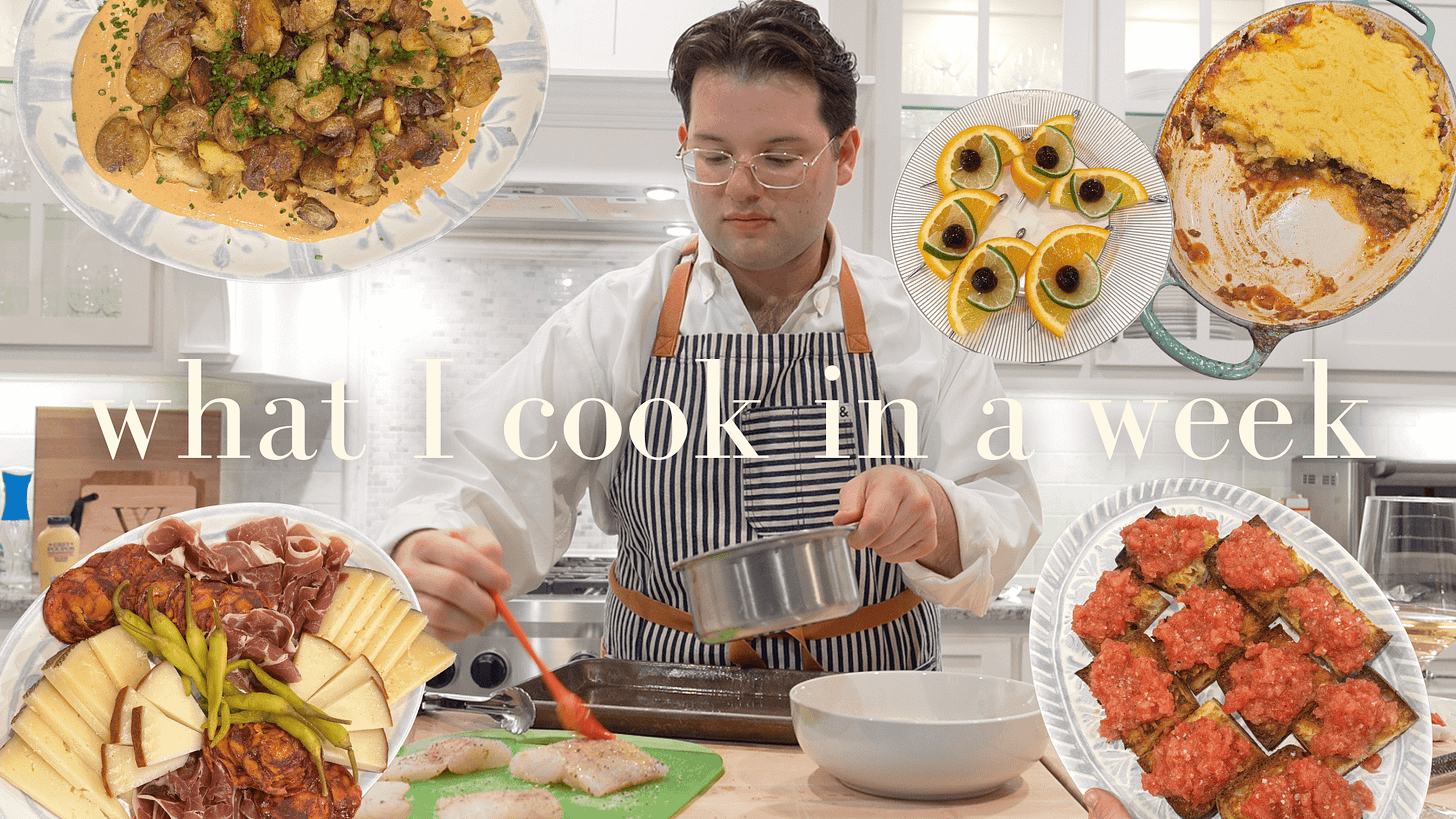 Below are 2 recipes that I served, and both were total hits. A smashed patatas bravas with spicy yogurt sauce and pan con tomate. Hope you enjoy! Printable PDFs for both recipes can be found at the end of this email. I also worked through these in real time in the last YouTube video, linked here: