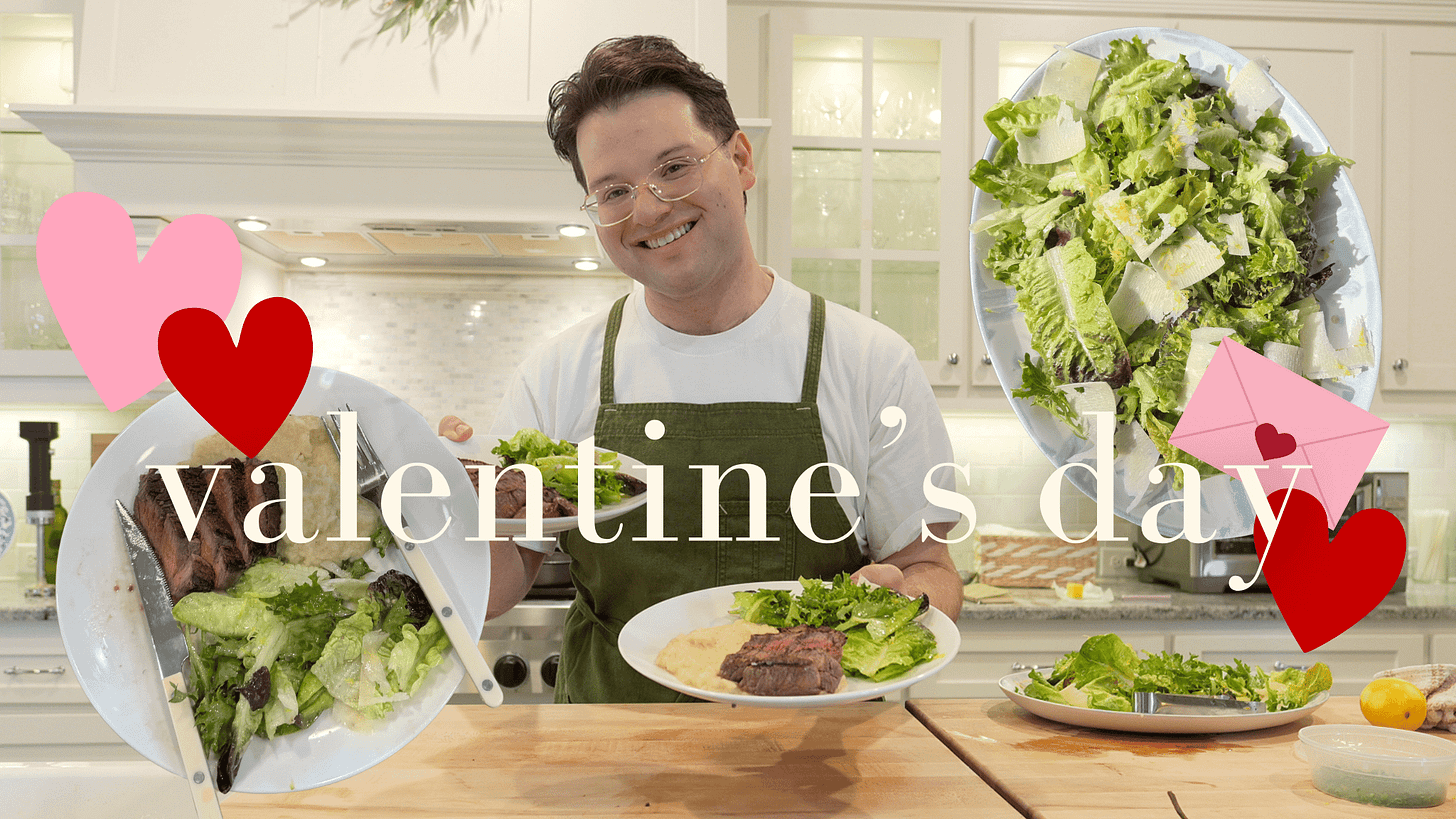 You, however, may have more intimate plans to cook at home, and share a nice meal with your special someone. If that’s the case, I have a lovely menu outlined below, and cooked through the whole thing from start to finish over on YouTube, if you’d like to watch!